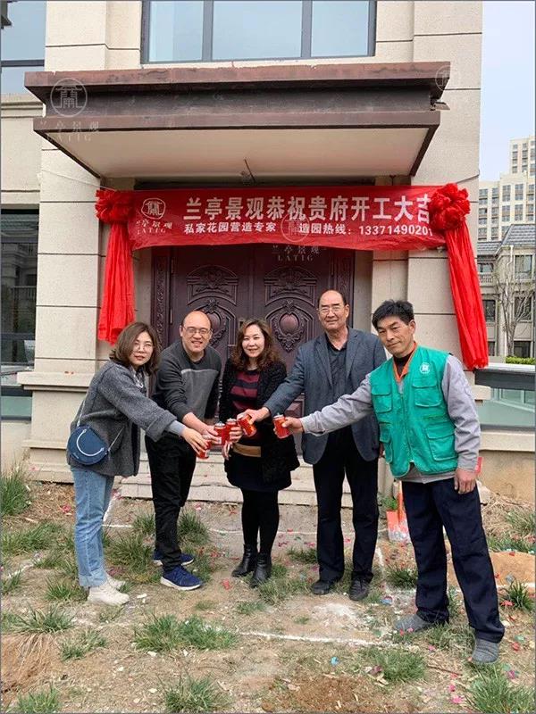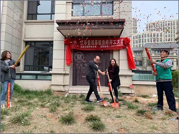 蘭亭景觀孫總、設計師孔敏、工程負責人員提前到達,準時為業主慶祝開工大吉!