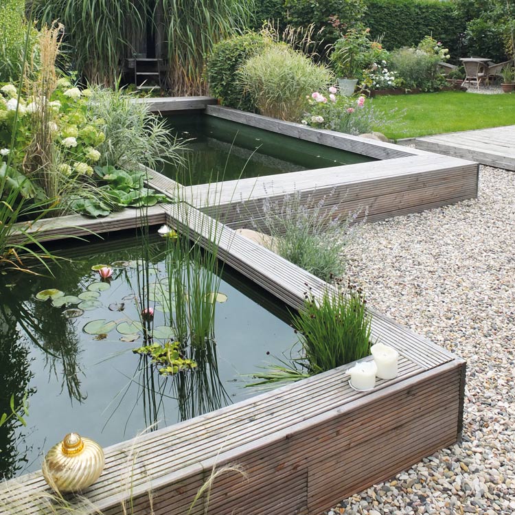 最后,這套青島別墅景觀庭院設計的幾處水池曉得比較有趣,會讓人誤以為是用防腐木砌的水池。鋪裝區域也是大草坪和礫石搭配,植物以觀賞草為主,自然搭配,顯得頗有野趣。