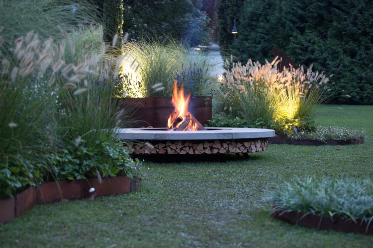 一眼望去別墅花園中都是茂盛的狗尾巴草,花園中再設置一個火爐,火爐的臺面在聚餐時還可以作為餐桌使用。除此之外整個花園都是一片大大的草坪,這樣的私家別墅花園設計方式不僅能滿足市場生活所需,而且后期維護成本也較低。