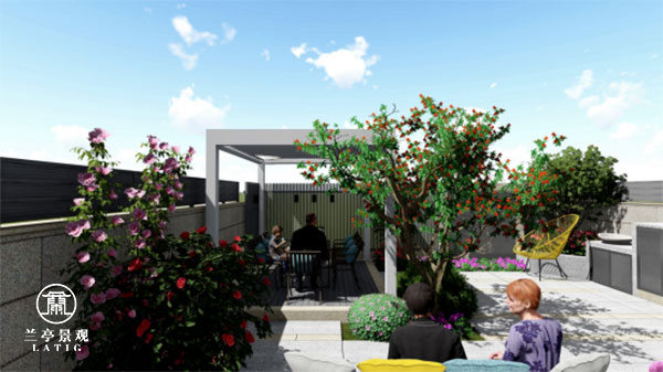 項目花園設(shè)計的定位是輕奢現(xiàn)代風(fēng),和室內(nèi)風(fēng)格搭配的同時便于打理是初衷。