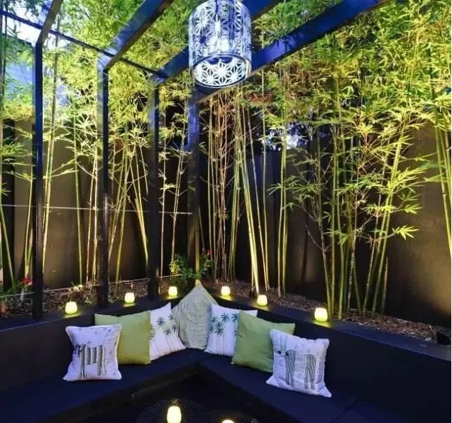 三、竹子也可作為遮擋材料,利用竹類植物在圍墻處組成綠籬、籬笆圍墻或者隔斷屏風,不僅具有遮蔽作用,還能增加庭院的層次,豐富庭院的色彩,營造出一個很有清雅的幽靜庭院。