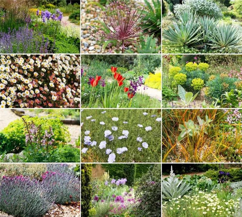 常常選擇的植物有鼠尾草,百里香,迷迭香,大戟,紫菀,艾草,天竺葵,薰衣草,絲蘭,石竹,丁香,毛地黃,罌粟,景天,勿忘我, 莎草,針茅,郁金香,雪花蓮等等。