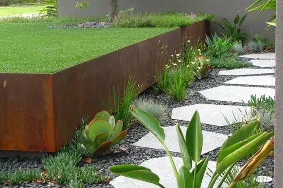 園路的鋪裝也有很多種形式,碎石、草坪搭配汀步等等,可以按照自己的喜好來選擇。